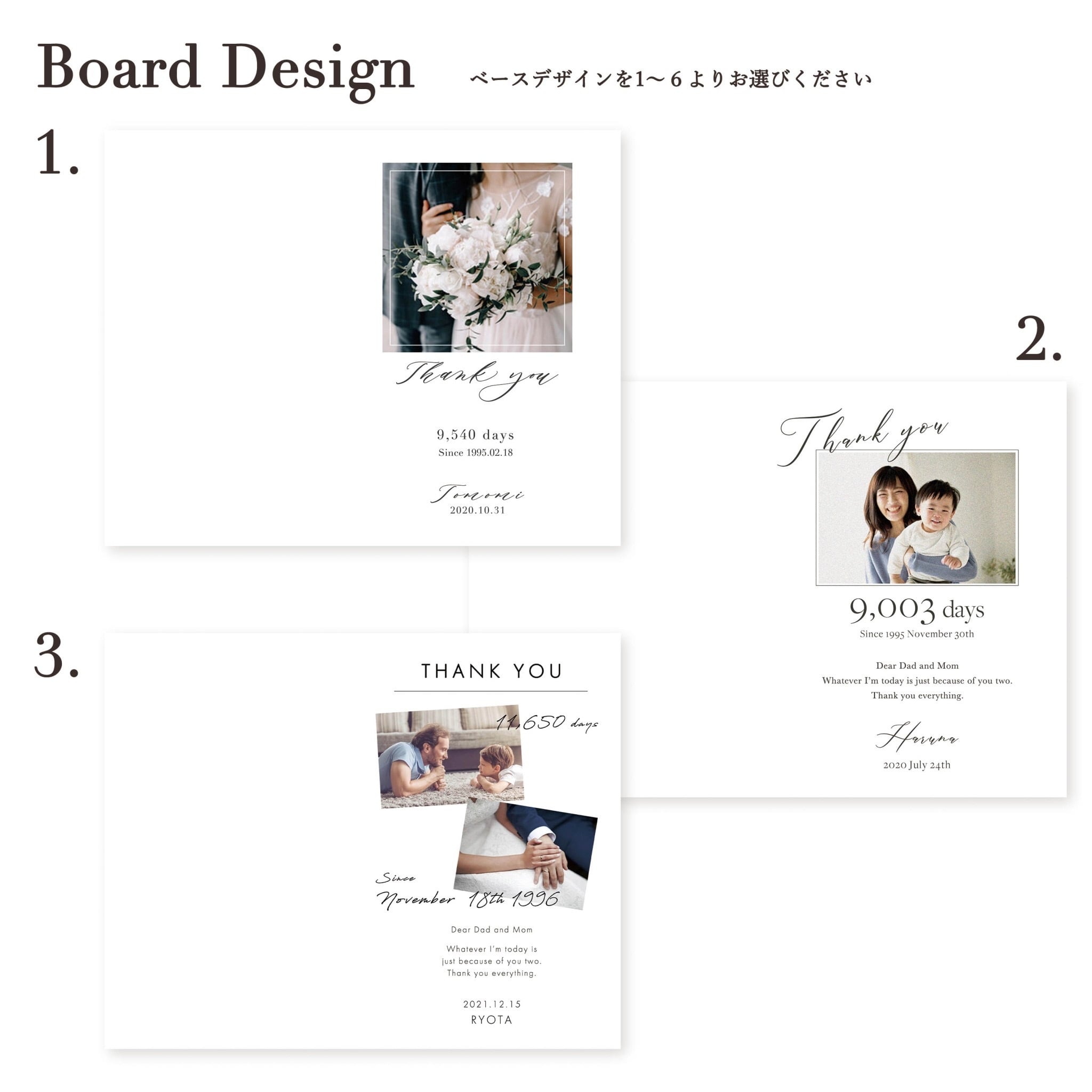 「ありがとう」の言葉と、生まれてからお式までのお日にちが刻まれた