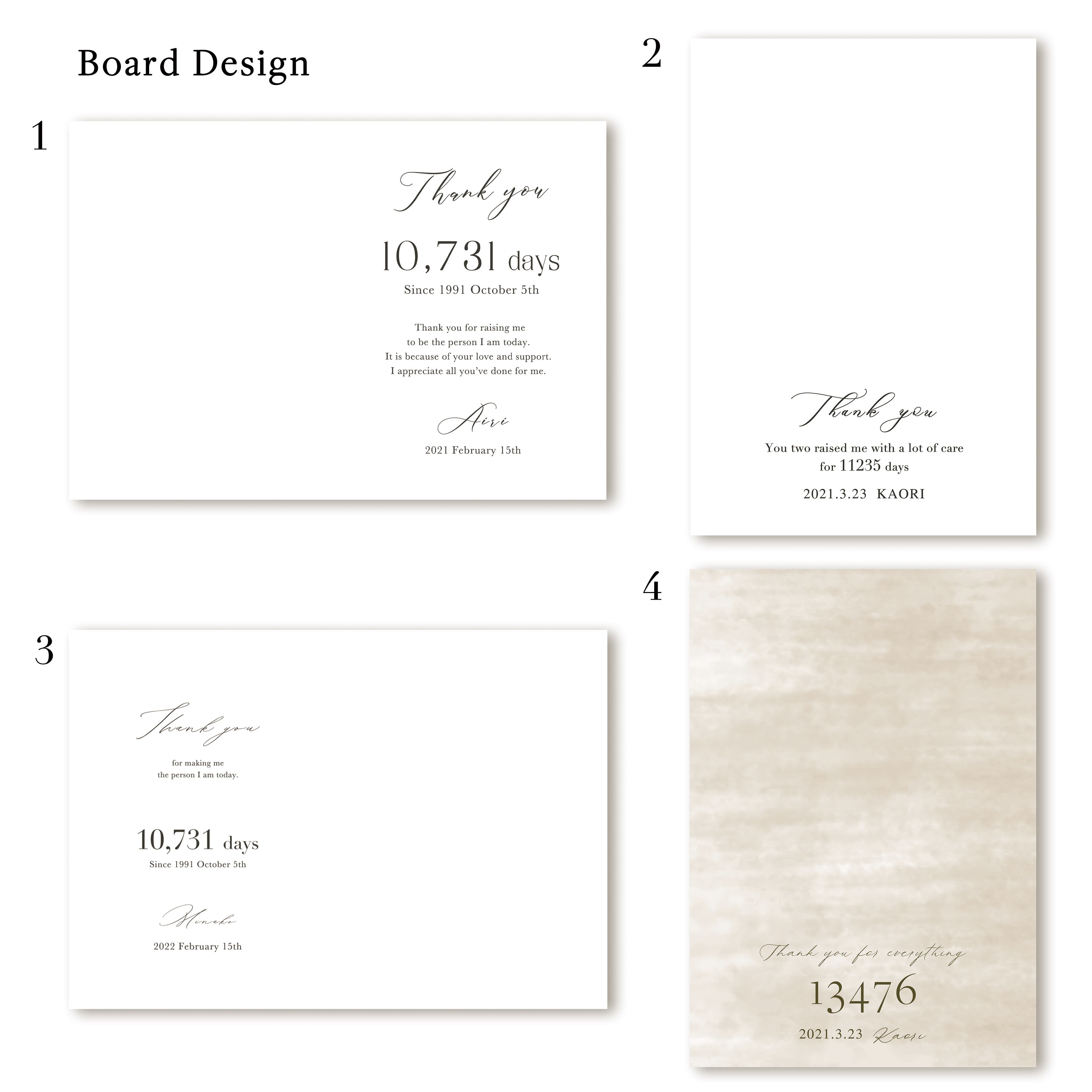 「ありがとう」の言葉と、生まれてからお式までのお日にちが刻まれた